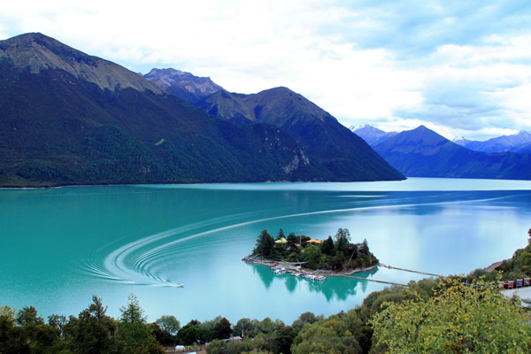 早餐后前往紅教圣湖—巴松措(游覽時間約1.5小時),天使留下的一滴淚,湖的形狀如鑲嵌在高山峽谷中的一輪新月,湖水清澈見底,雪山相映湖中,情趣瑩然,令人真正的回到“香格里拉”,令人沉醉,湖中有一小島,島中有一建于唐代末的寺廟—錯松廟,殿內主供蓮花祖師、千手觀音和金童玉女。雪峰,冰川,原始森林,古跡將巴松措緊緊環繞,夕陽把雪山頂峰變成了紅色,底部仍然是濃重的青黛,近湖的樹林剪影浮動在水面,湖水悠藍,使這里宛如人間仙境。隨后走進藏家,品酥油茶、了解藏家民風民俗。最后返回拉薩 ,前往酒店入住。